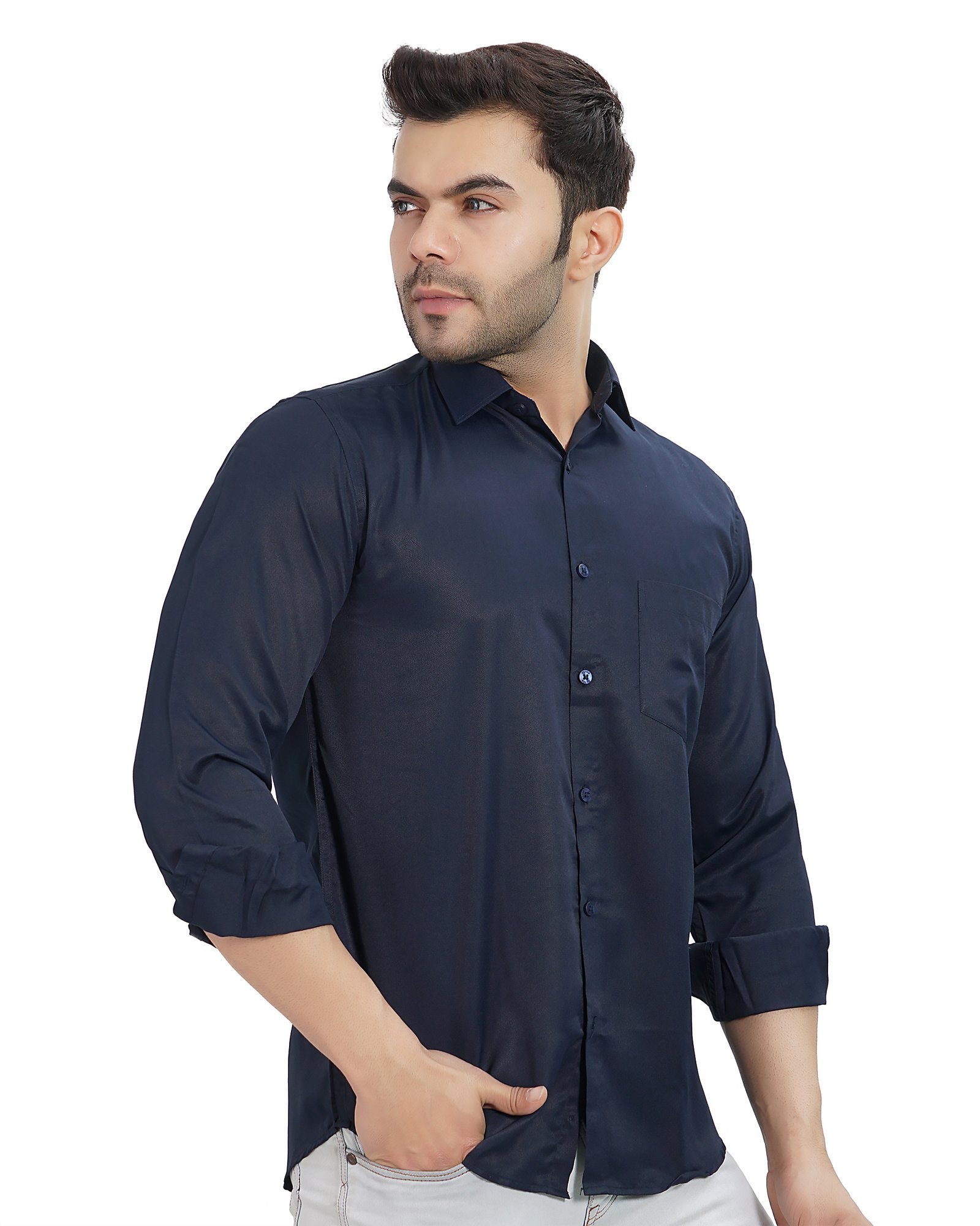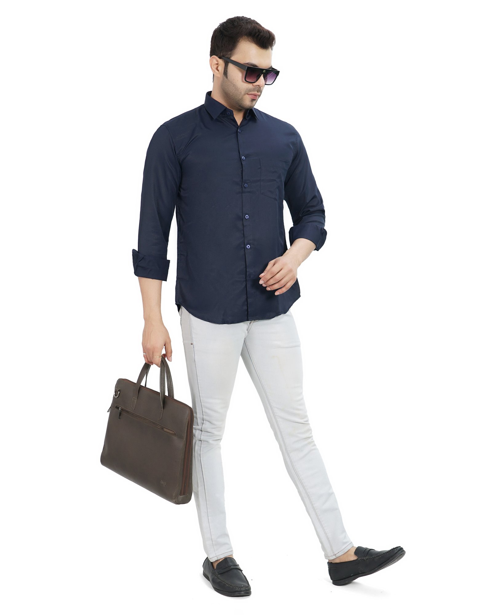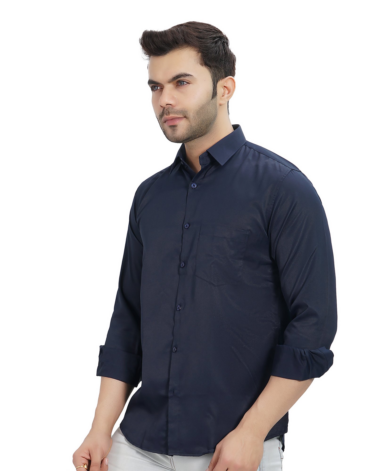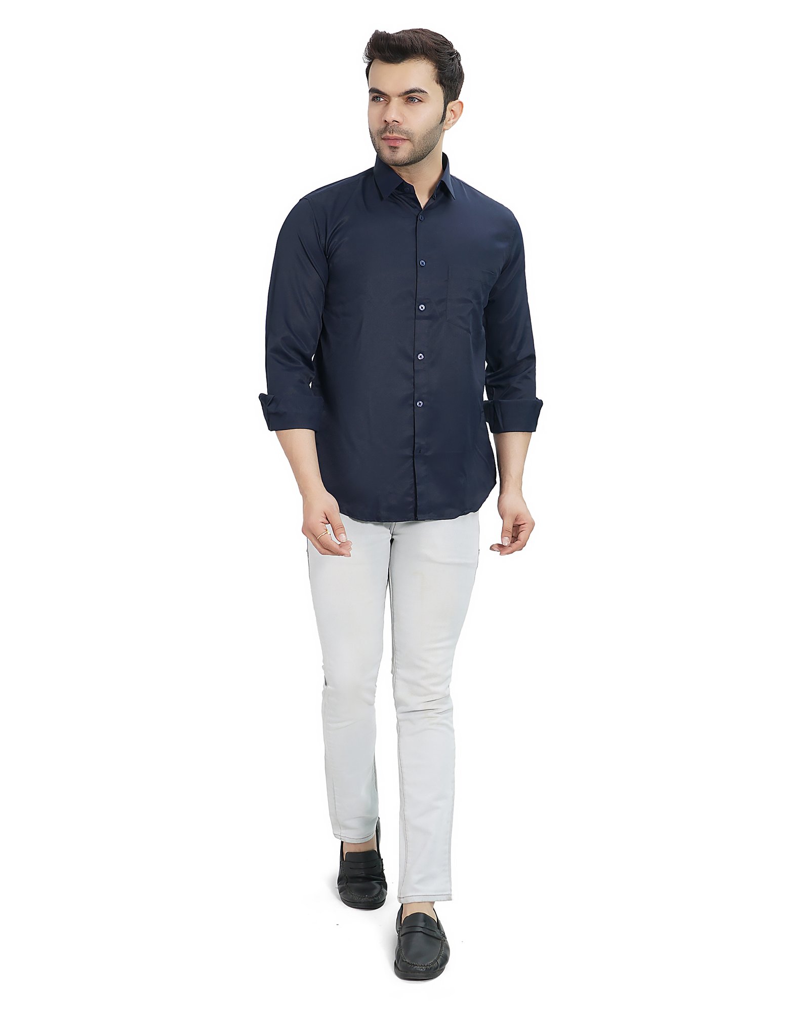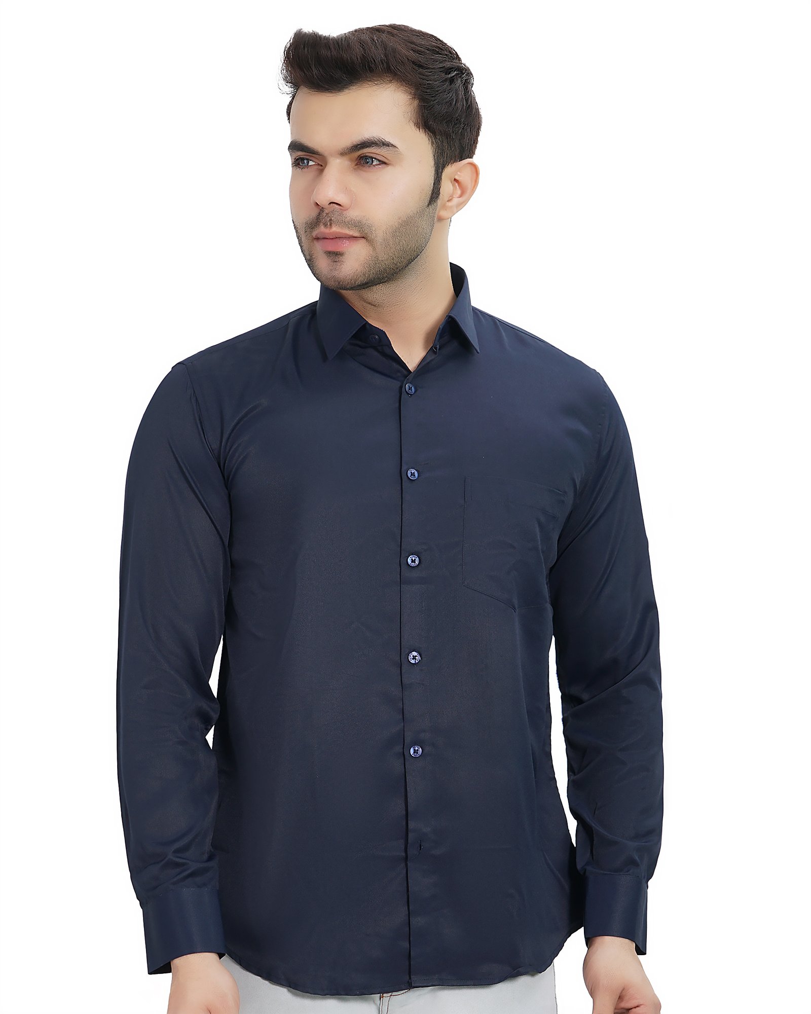 Men’s Solid Full Sleeve Shirt, Navy Blue